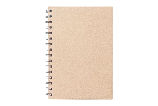 Caiet cu spirală, cu coperta tare, din hârtie reciclată, 80 de file dictando, dimensiune A5.