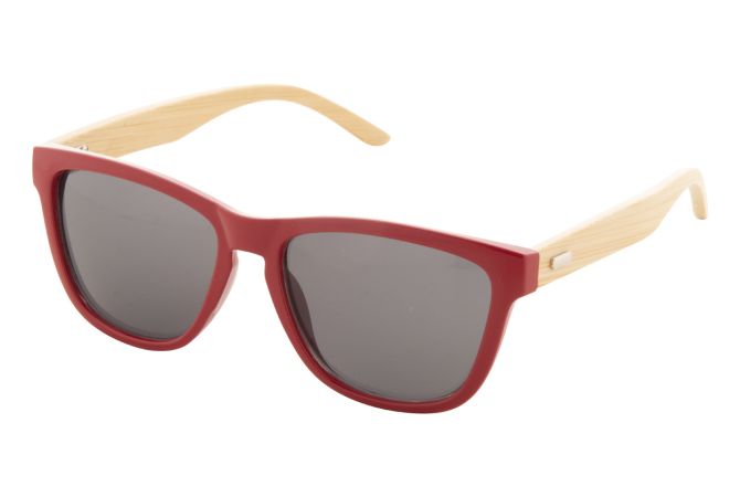 Ochelari de soare cu ramă din plastic colorat și brațe din bambus.