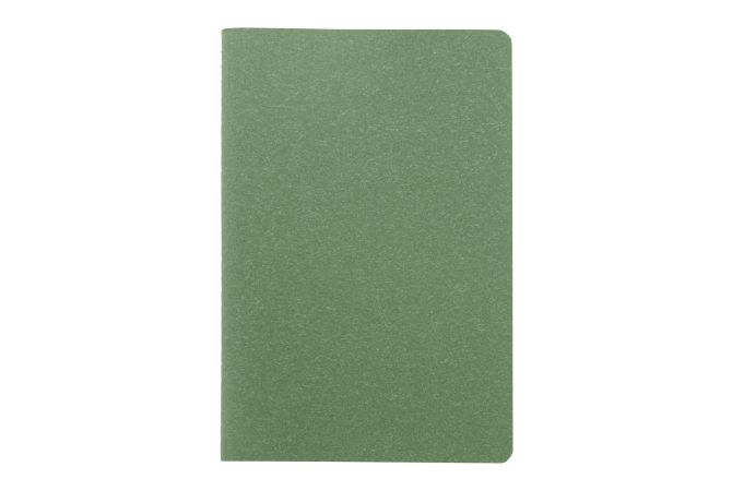 Caiet cu copertă cusută, din hârtie reciclată, 60 de foi veline din hârtie kraft reciclată. Dimensiune A5.