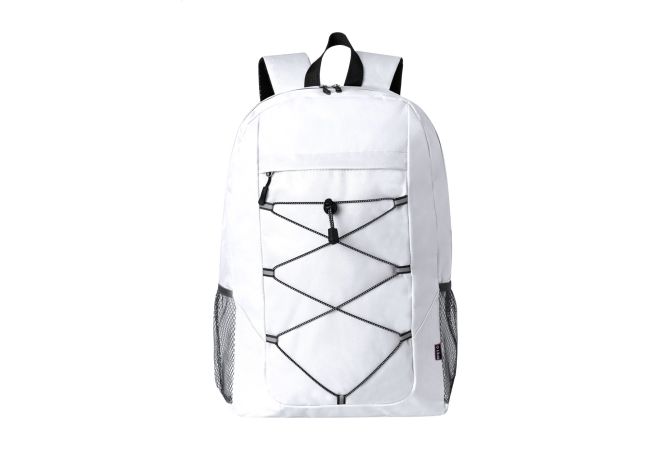 Rucsac RPET, cu compartiment cu fermoar și buzunar frontal, buzunare laterale din plasă, spate și bretele căptușite. Poliester 600D RPET cu etichetă distinctivă RPET.