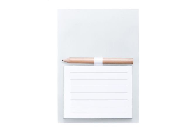 Blocnotes magnetic pentru frigider cu 40 file și un creion din lemn.