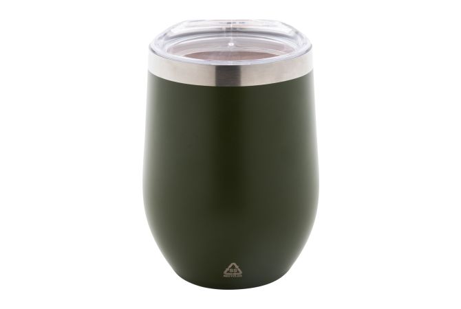 Cană termică, din oțel inoxidabil reciclat, cu perete dublu, cu capac de plastic pentru băut. 350 ml.