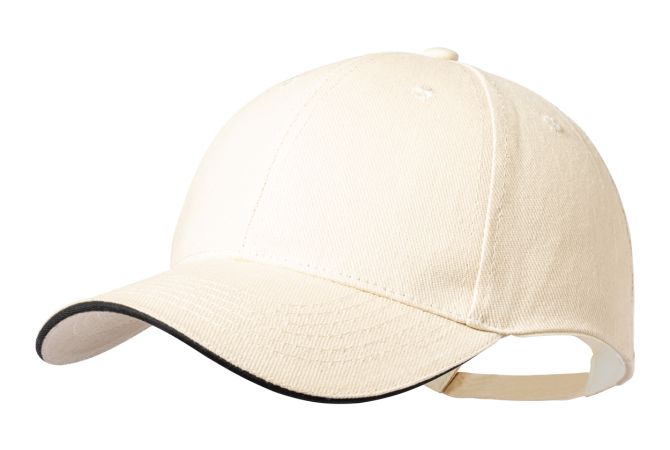 Șapcă baseball, din bumbac periat 100%, cu 6 panouri și închidere cu cataramă metalică.
