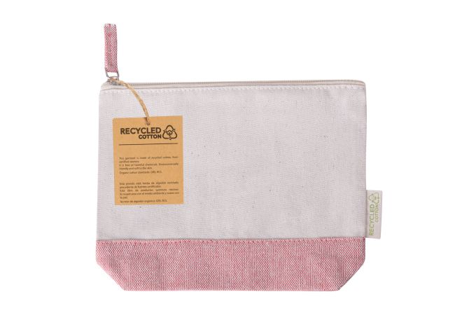 Geantă pentru cosmetice, din bumbac reciclat, cu fermoar, în două tonuri. 100% bumbac reciclat cu etichetă distinctivă de bumbac reciclat.